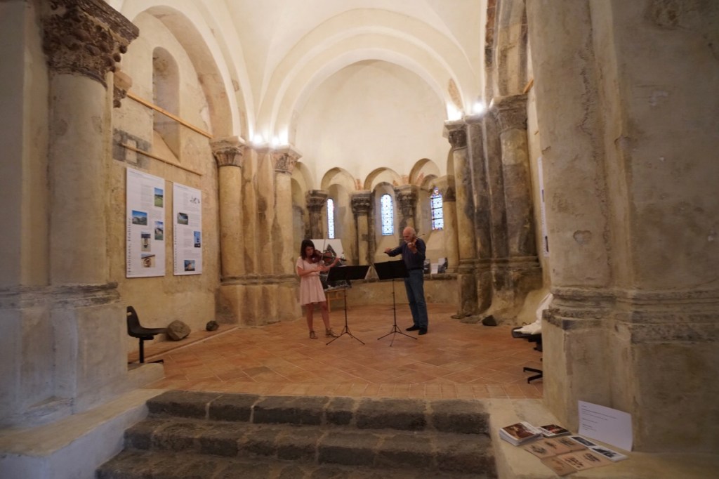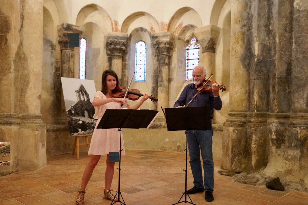 C’est ainsi qu’après la présentation de l’exposition par Marilyne Avont du Pays d’art et d’histoire, Gersende Mondaniet Patrice Fontanarosa ont joué plusieurs pièces et sonates de Vivaldi, Mendelshon ou encore Prokoviev… figurant dans le programme de leur concert « Au beau voyage des violons ».