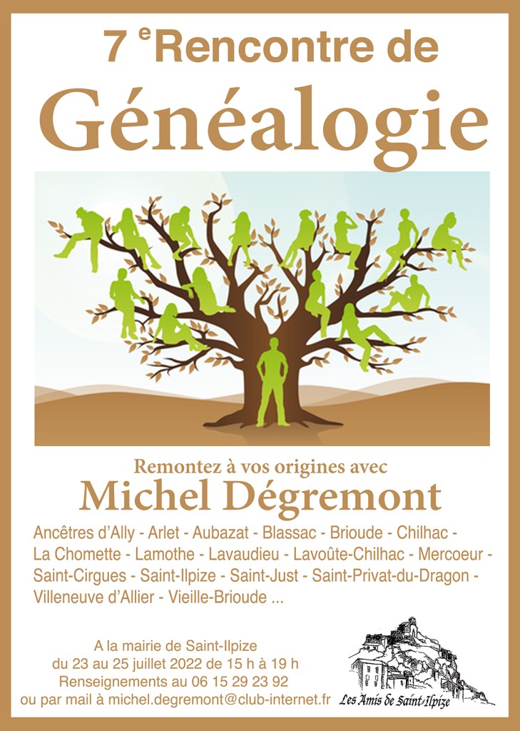 Cette année verra la 7e édition de la Rencontre de Généalogie, animée par Michel Dégremont, vice-président des Amis de Saint-Ilpize, passionné par les recherches généalogiques.